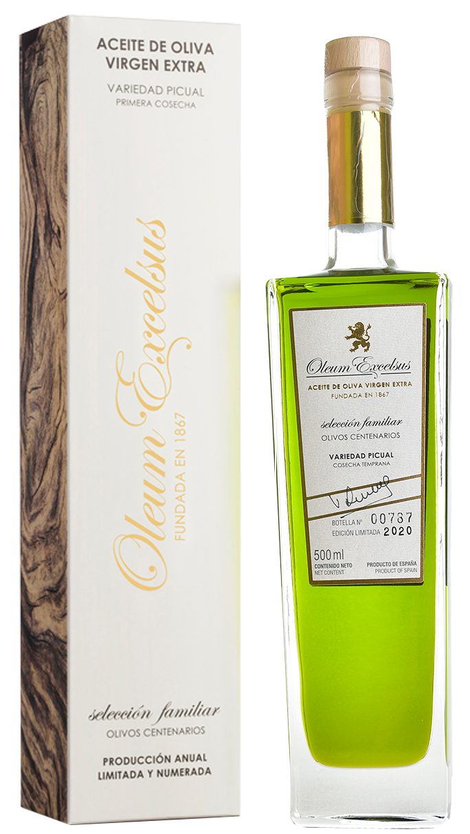 El resultado es Oleum Excelsus, un Virgen Extra de máxima calidad y único en su variedad del que existe una producción anual limitada y numerada que nunca supera las 33.500 botellas.